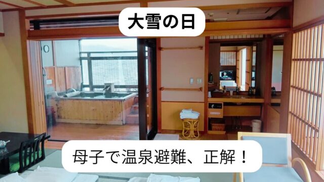 その他 【大雪】親子で温泉に避難して正解だった話|部屋風呂付き客室で引きこもり 2026年1月17日 karin20241024 波に乗る、シングルマザーのサバイバル記 大雪予報の連休。家に閉じこもるのはしんどくて、親子で温泉に避難しました。結果、部屋風呂付き客室を選んだのは大正解。外に出なくても快適で、子 …