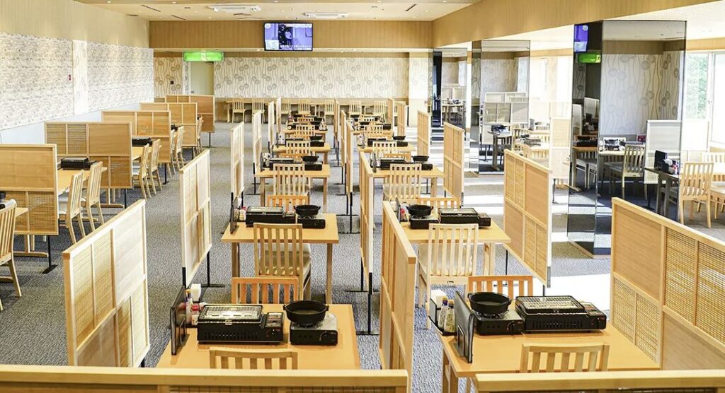 - レストランでの食事中、席で浜焼きができました。ただ、煙が充満し、部屋全体が白っぽくなっていました。料理を取り終えて席に戻ろうとする方々が、「白っ!」「けむっ」っといいながら、席についていました。笑 換気が追い付かなかったのかな。